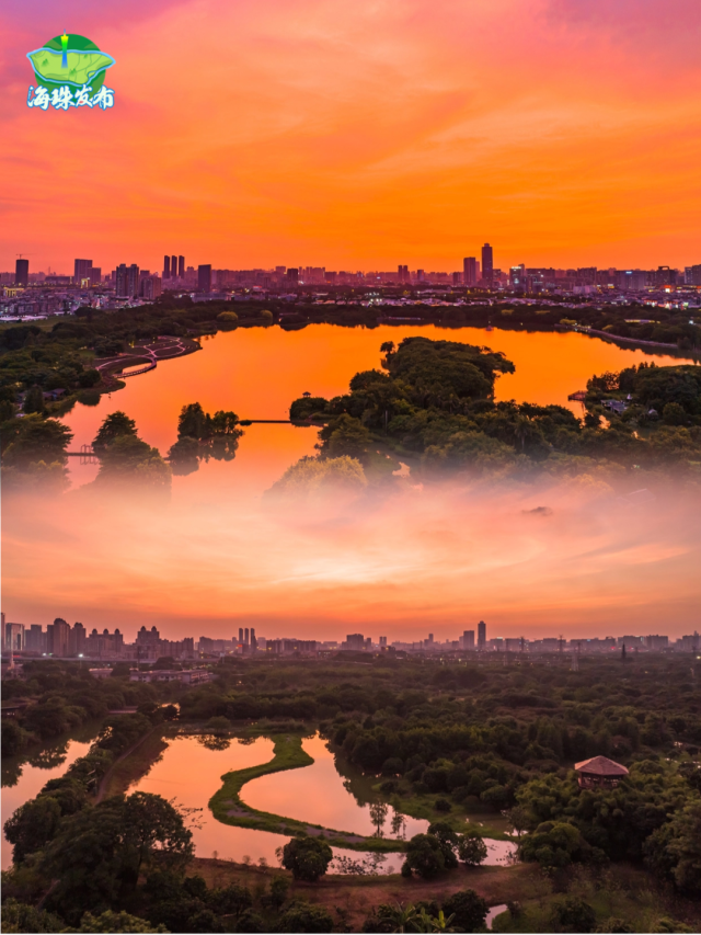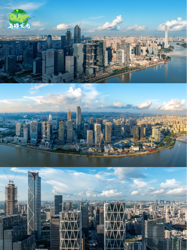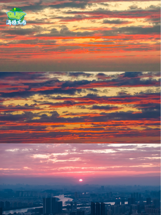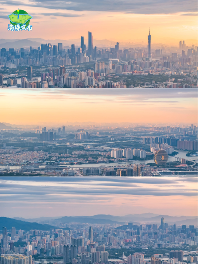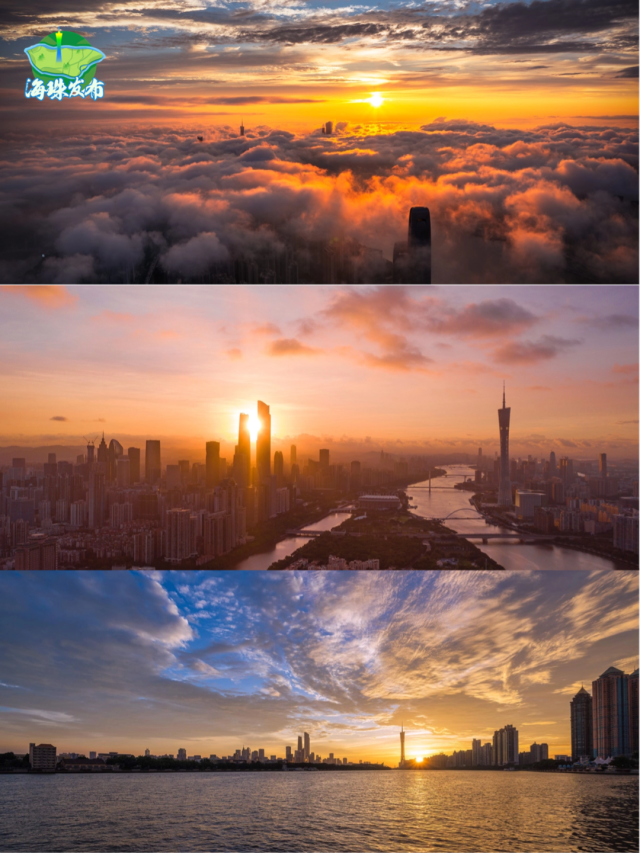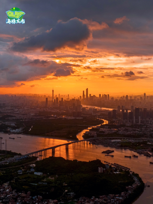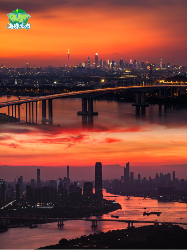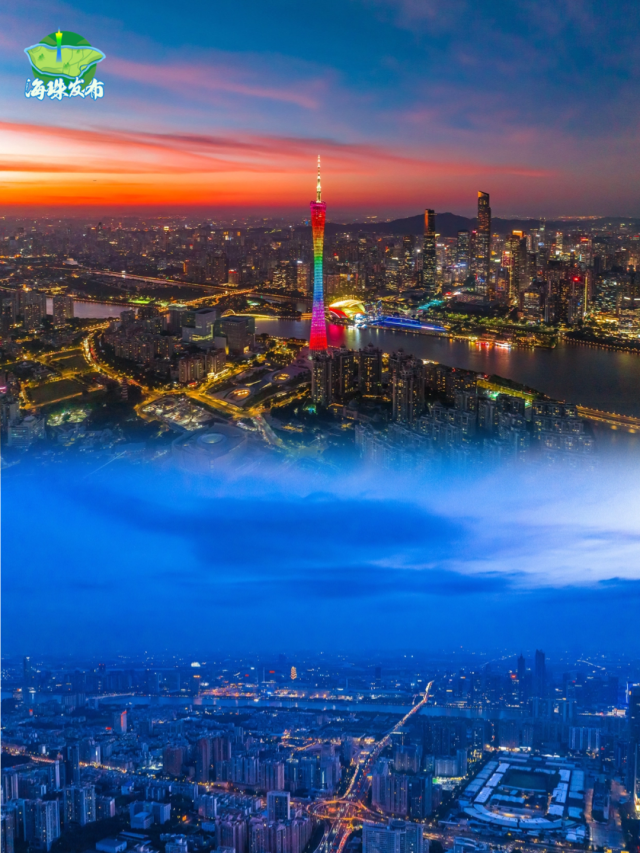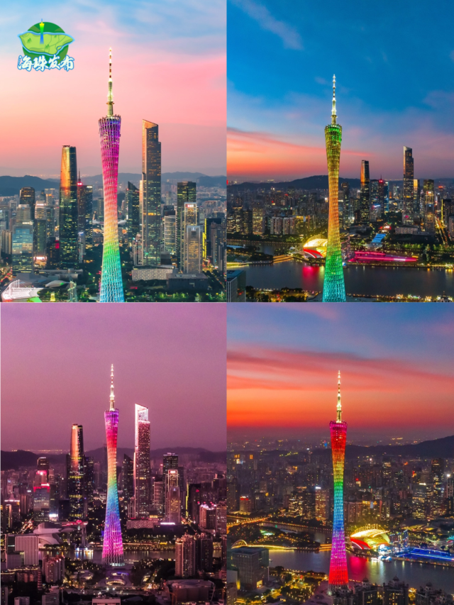 傍晚,太阳西下,天空开始上演色彩的盛宴。金黄色、橙红色、粉紫色、深蓝色......是大自然画师在尽情挥洒。广州塔换上了璀璨的灯光,夕阳的余晖交织在一起,形成了一幅绚丽多彩的画卷。