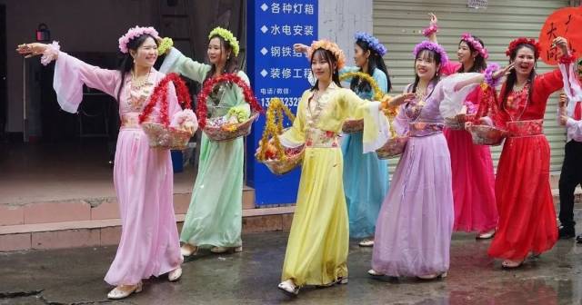 作为广州市级非遗代表性项目,本次龙潭村天后诞阵容盛大,巡游队伍由三十个项目组成,其中有八名大汉抬着天后像乘坐的龙轿(銮轿),有带刀护卫以及十三太保兵护卫,有女子(旱)龙舟队、凤艇队,还有天女散花、舞龙、舞狮等等。