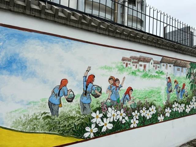 墙绘的图画与文字说明相得益彰,生动活泼地诉说着素馨花从古至今的文化内涵。