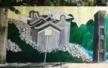 △辖内书画爱好者对庄头公园周围的墙体进行美化墙绘