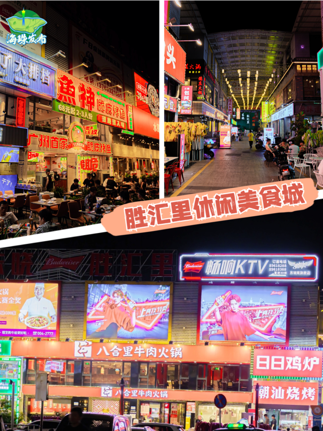 胜汇里美食城:遍地美食,麻辣香锅、牛肉火锅、烤鱼、串串、日料、东南亚菜一点都不少,主打夜间餐饮,烟火气十足。