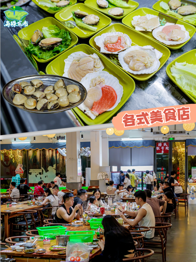 美食店铺:靓姐南宁蒲庙生榨米粉、大豪流沙肠粉、粤陈记煲仔粥、宏记点心、知香堂等;