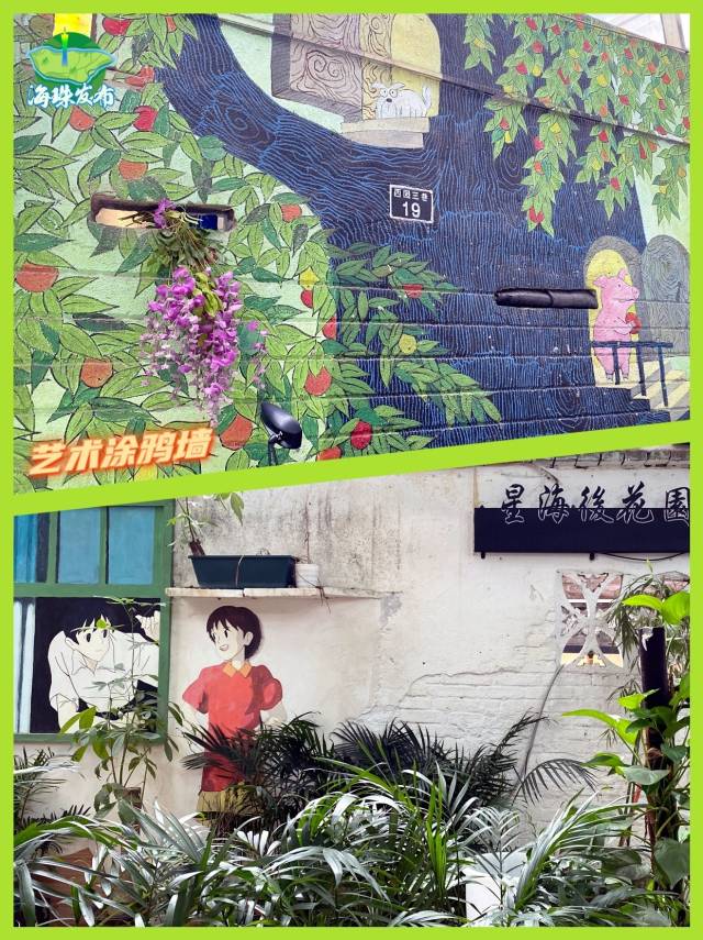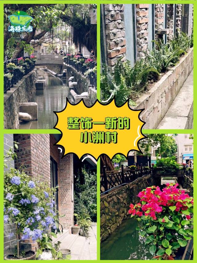 整饰一新的小洲村,道路平整,河涌干净清澈,铁艺花盆点缀其中,从A线开始往内走,岭南特色建筑随处可见,全村累计有24处不可移动文物,艺术名家工作室、文创小店聚集于此,艺术氛围氤氲村中每一角落。漫步小洲村,不要错过任何一个角落,说不定“宝藏”就藏在其中。