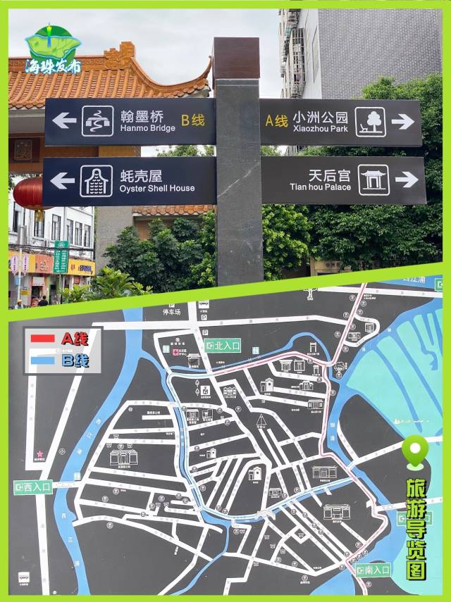 (PS:进入牌坊后会有导览图及线路指引,留意哦!大家可以走完A线接着B线走,刚好绕小洲村一圈。)