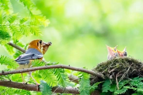 鸫科是善鸣的鸟类,橙头地鸫更是其中的佼佼者,它们嗓音甜美清晰,还能模仿其他鸟类叫声。