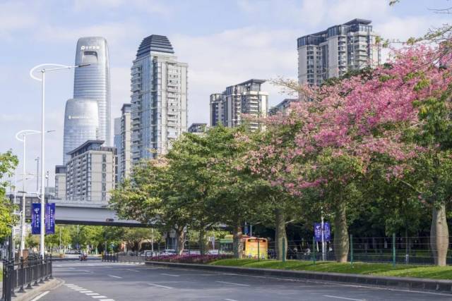 粉色的异木棉接连成片