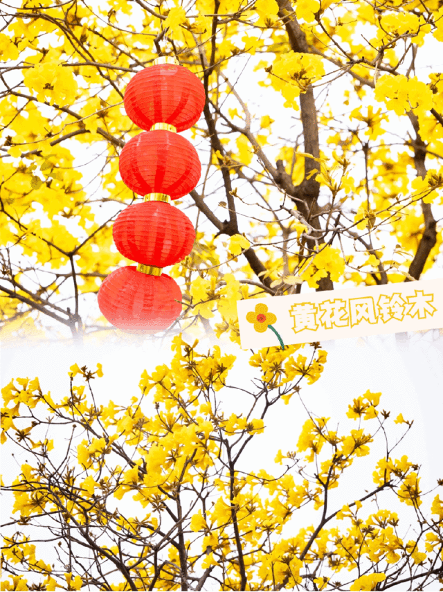 金铃一般俏皮灿烂的黄花风铃木盛放