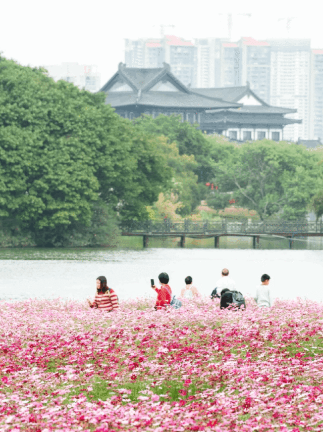 赏花地点:娱乐城平台湖公园·花畔塔影