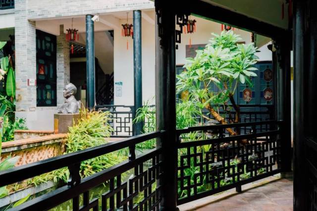 踏着青石板路,穿行长廊之中,幽静别致的风景映入眼帘:亭台水榭,花香十里,青砖绿瓦、泉水潺潺,如在画卷漫游,听取鸟鸣一片。素雅别致的岭南气韵扑面而来,古色古香的庭院,徐徐清风穿堂,空气中夹带着各种鲜花散发的迷人香气。