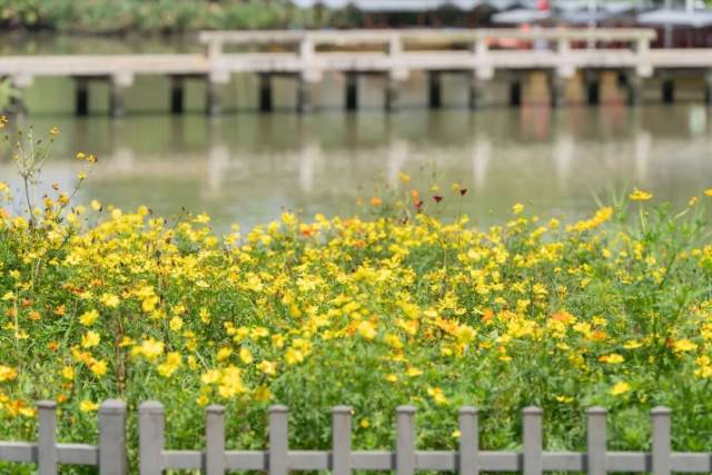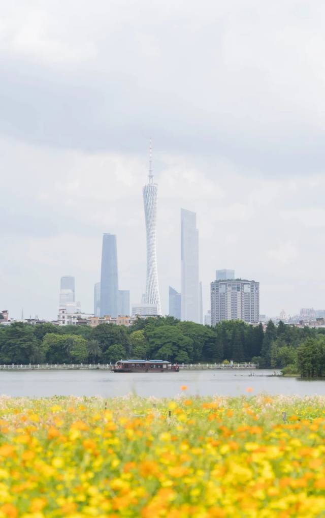 除此以外,在湿地一期贯览桥下,还有一片硫华菊的花海等着大家!说不定能跟广州塔合影呢~