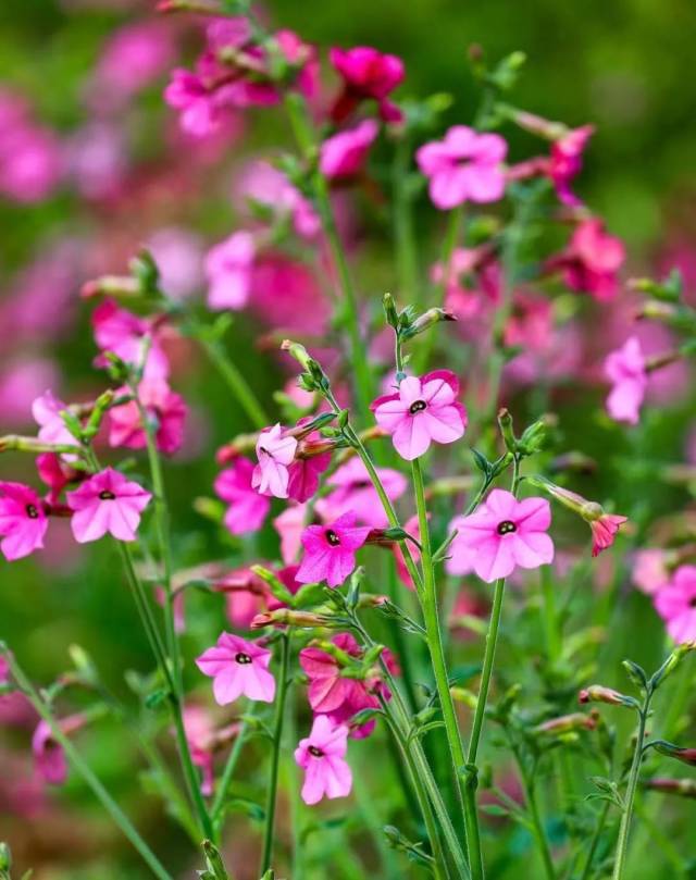 这片金色的海洋中,花烟草以其独特的姿态悄然绽放,玫瑰粉的花瓣羞答答地低着头,增添了几分神秘与梦幻。它们与硫华菊相互映衬,共同编织了一个关于秋天的童话。