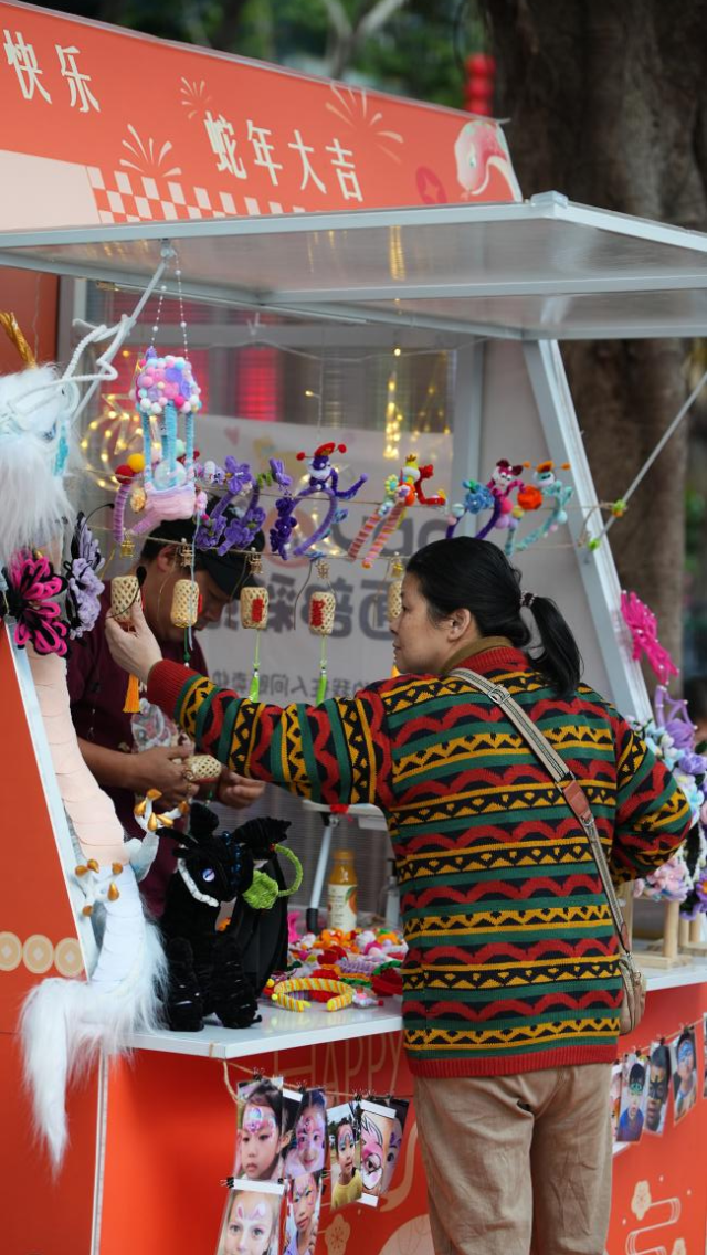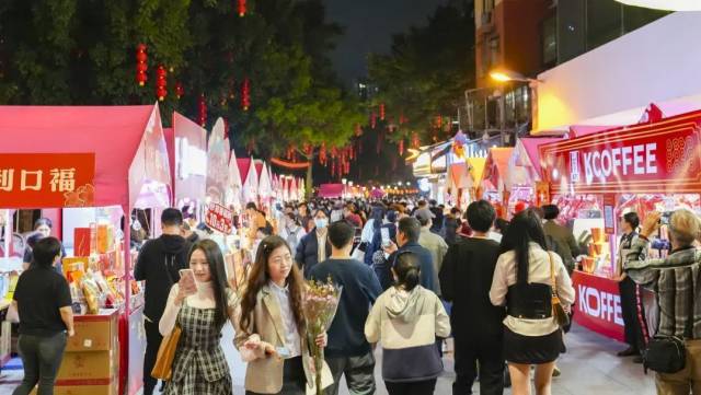 百余摊位沿街铺陈,非遗手作、萌宠周边、琳琅满目,更有商家限时折扣!淘一只素馨纹样文创、为爱宠定制专属项圈,将“广式浪漫”收入囊中。